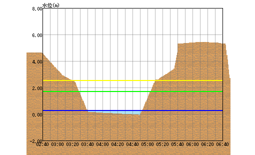 | 水位(m) | 04:50 0.25 → | 05:00 0.25 → | 05:10 0.25 → | 05:20 0.25 → | 05:30 0.25 → | 05:40 0.25 → | 05:50 0.25 → | 06:00 0.25 → | 06:10 0.25 → | 06:20 0.25 → | 06:30 0.25 → | 06:40 0.25 → |