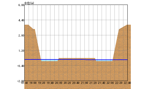 | 水位(m) | 18:50 0.22 → | 19:00 0.22 → | 19:10 0.22 → | 19:20 0.22 → | 19:30 0.22 → | 19:40 0.22 → | 19:50 0.22 → | 20:00 0.21 ↓ | 20:10 0.21 → | 20:20 0.21 → | 20:30 0.21 → | 20:40 0.21 → |